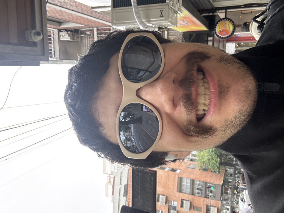 - "A tilted close-up shows a man with dark hair and a mustache wearing large, round sunglasses" by FM-HX1eR2, licensed under CC BY 4.0