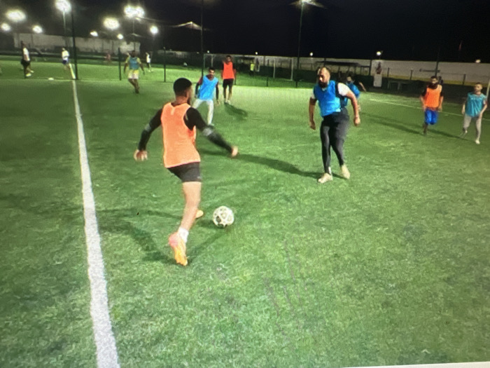 - "A group of people play soccer on a well-lit artificial turf field at night" by FM-jNNUn2, licensed under CC BY 4.0