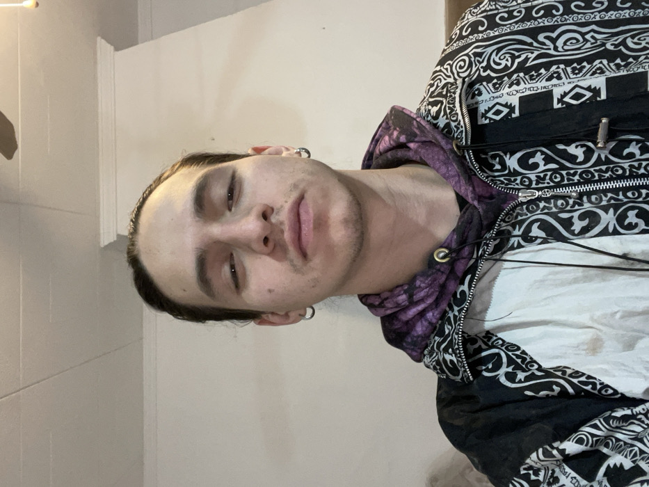 A male individual, appearing to be a young adult, is depicted in a head-and-torso close-up, facing directly towards the camera
