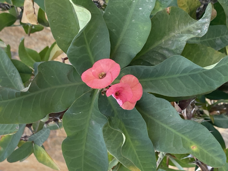 - "The image displays a close-up, top-down perspective of a flowering plant, likely *Euphorbia milii* (Crown of Thorns), located in Cotoperíz, Venezuela" by FM-a3sBJ3, licensed under CC BY 4.0