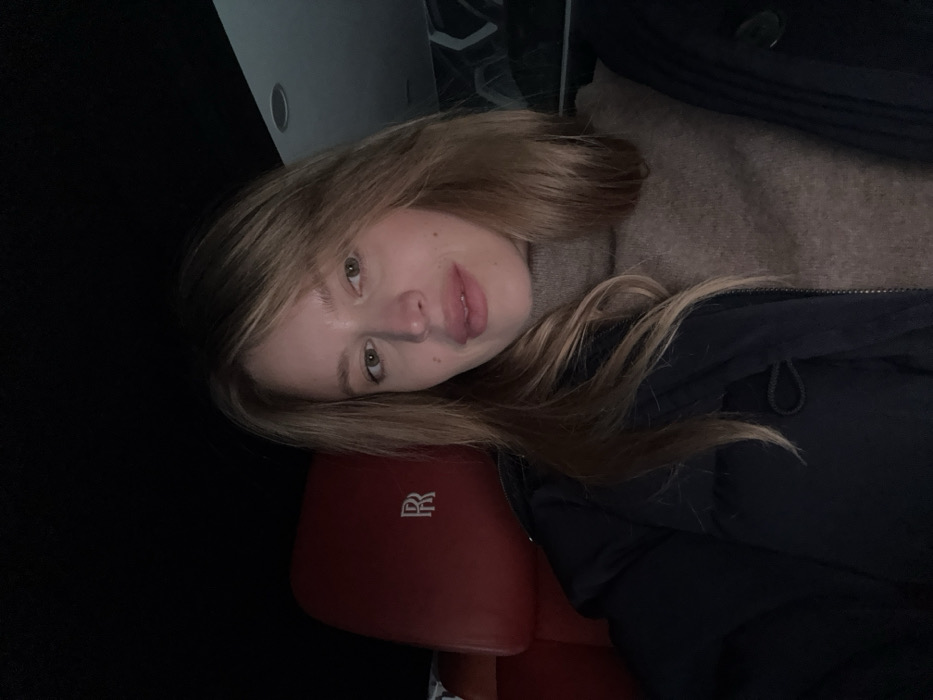 - "A woman with blonde hair and green eyes is reclining in a red leather car seat with a Rolls Royce logo" by FM-yjK1X2, licensed under CC BY 4.0