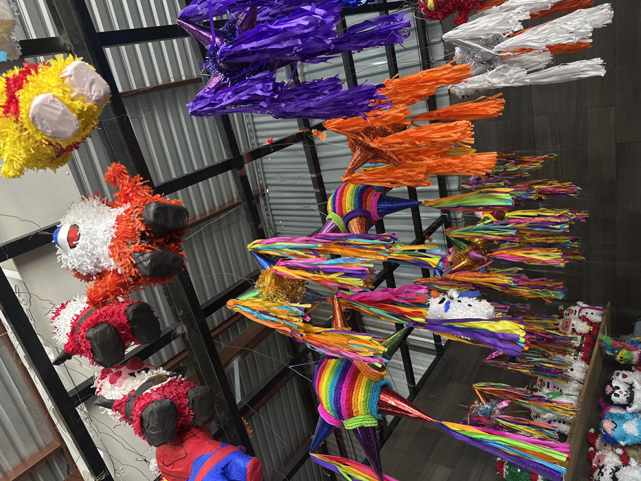 - "A warehouse displays an assortment of piñatas hanging from a black metal structure" by FM-OKeT52, licensed under CC BY 4.0