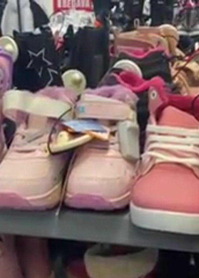 rack of children's shoes in a retail store