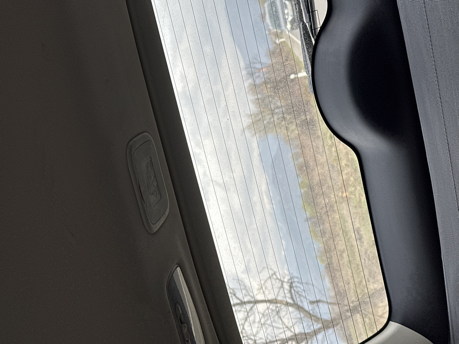 This image captures a view from inside a vehicle, looking out the rear window, situated in Karnare, Bulgaria