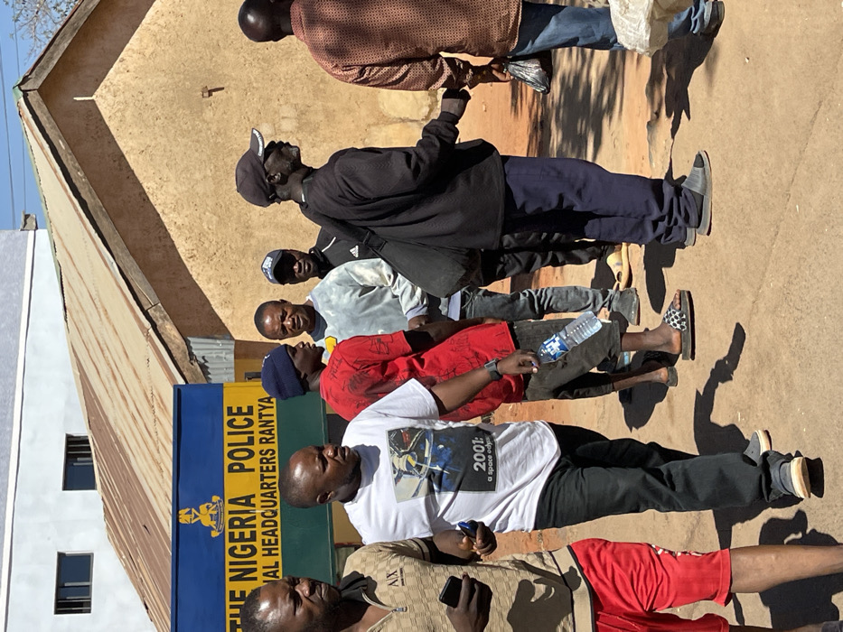 The image depicts an outdoor daytime scene in Jos, Nigeria, specifically at the Nigeria Police Divisional Headquarters in Rantya