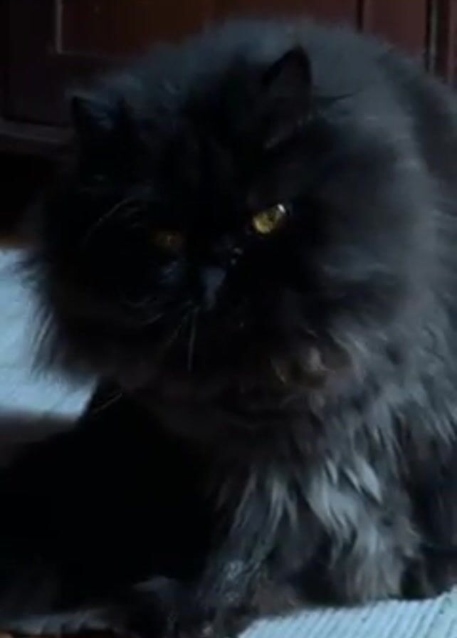 - "fluffy, black Persian cat with amber eyes sitting on a small, blue rug indoors" by FM-euyLP2, licensed under CC BY 4.0