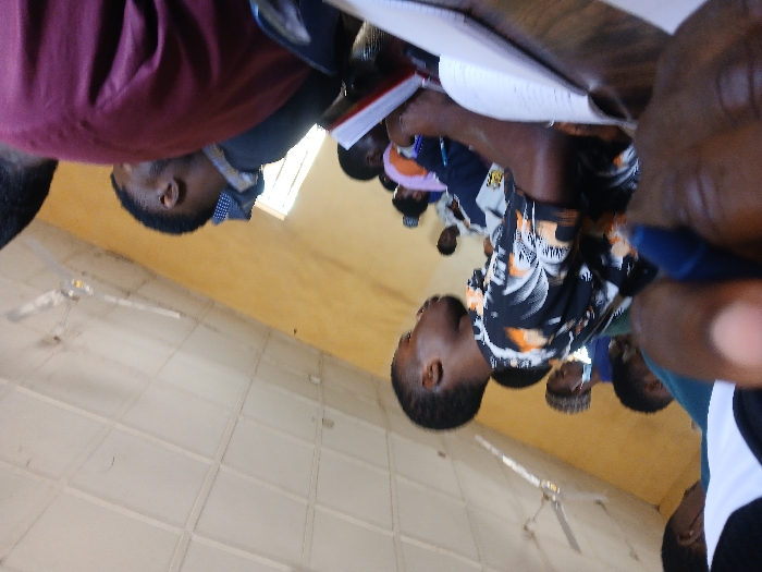 This image depicts an indoor scene, likely a classroom or lecture hall, situated in Ugi Majowel, Nigeria