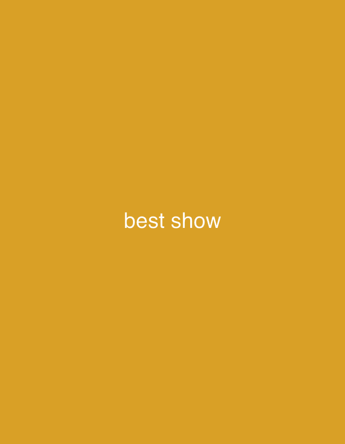 The image is a solid, slightly desaturated yellow background. Centered on the image are the words "best show" in a clean, sans-serif font. The text is white, providing a stark contrast against the yellow backdrop.