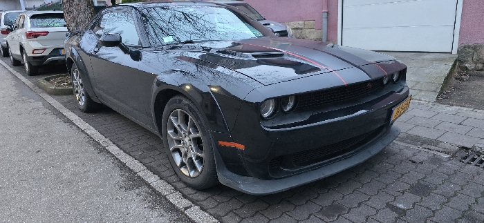 - "A black Dodge Challenger with red stripes is parked on a brick street" by FM-hFjFV2, licensed under CC BY 4.0