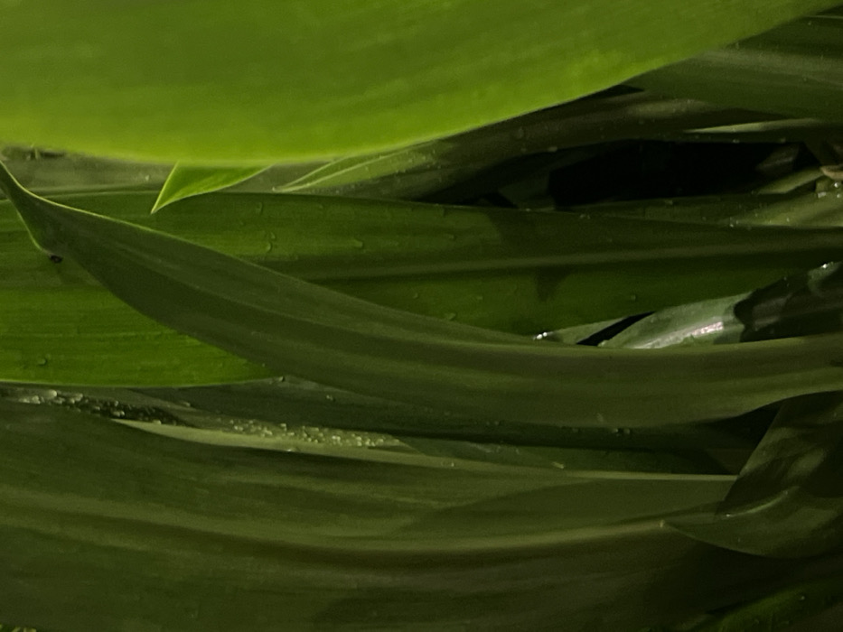 - "A close-up shows several broad, green leaves overlapping, some with a sheen of moisture or droplets" by FM-ptb0E2, licensed under CC BY 4.0