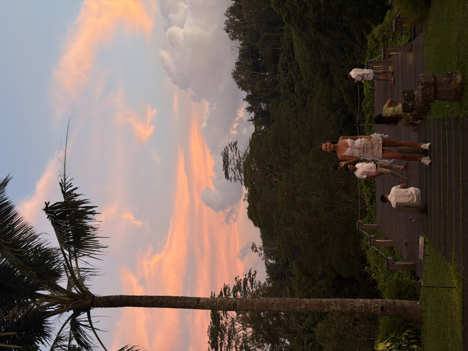 - "The image captures five individuals on an elevated wooden deck at sunset in Ubud, Indonesia, overlooking a dense tropical jungle" by FM-PcEqo1, licensed under CC BY 4.0