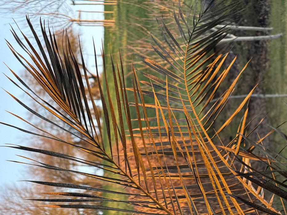 - "Two palm fronds, prominently displayed, feature sharp, pointed leaves radiating from central stems" by FM-euyLP2, licensed under CC BY 4.0