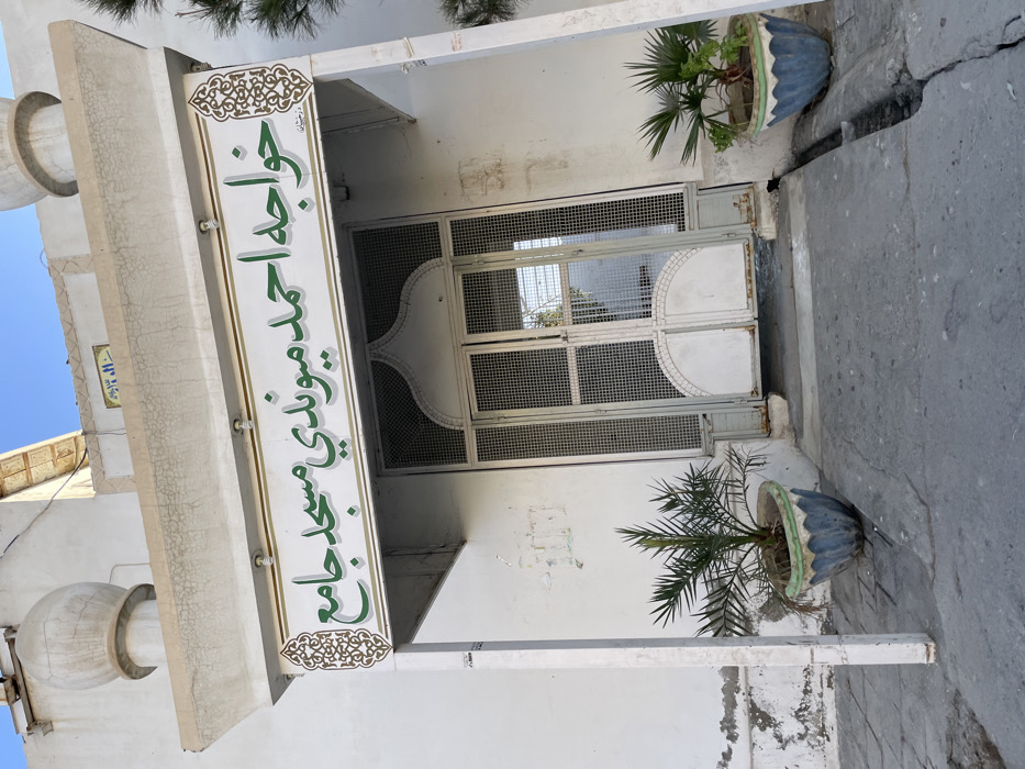 - "The image displays the exterior of a white-painted building, identified by a sign as a mosque, specifically "خواجه احمديوندي مسجد جامع" (Khawaja Ahmadyundi Grand Mosque)" by FM-LYje72, licensed under CC BY 4.0