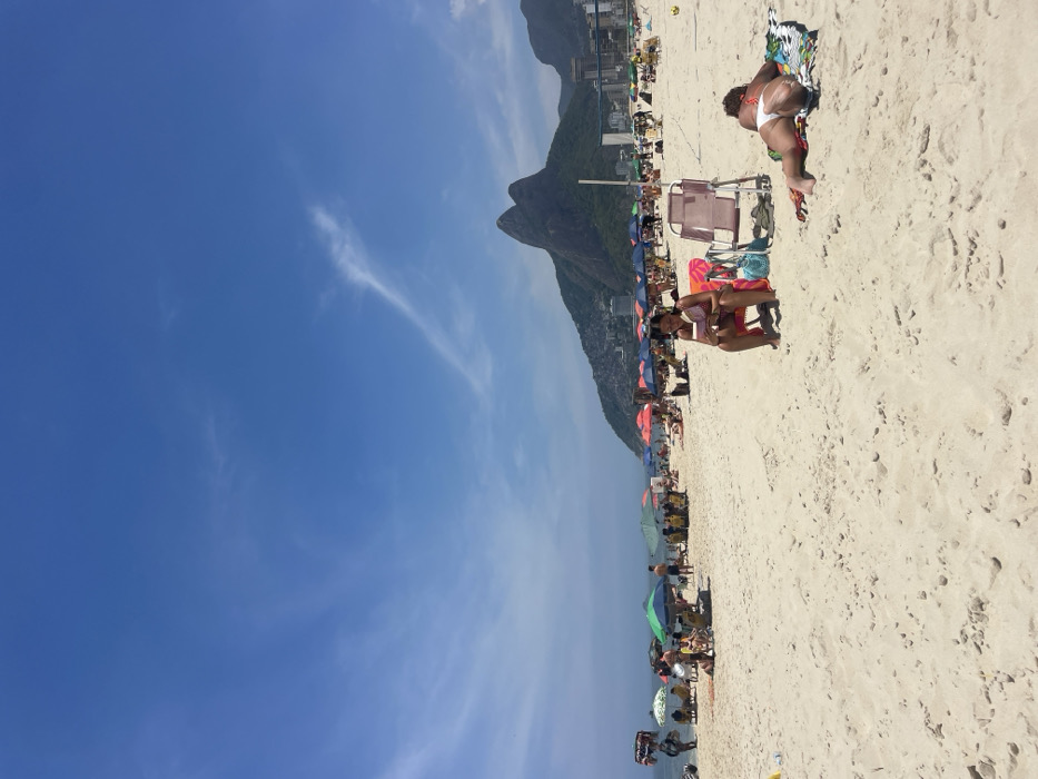 - "The image presents a wide-angle view of Ipanema Beach in Rio de Janeiro, Brazil, on a clear, sunny day under a bright blue sky with sparse, wispy clouds" by FM-Wg4lr1, licensed under CC BY 4.0