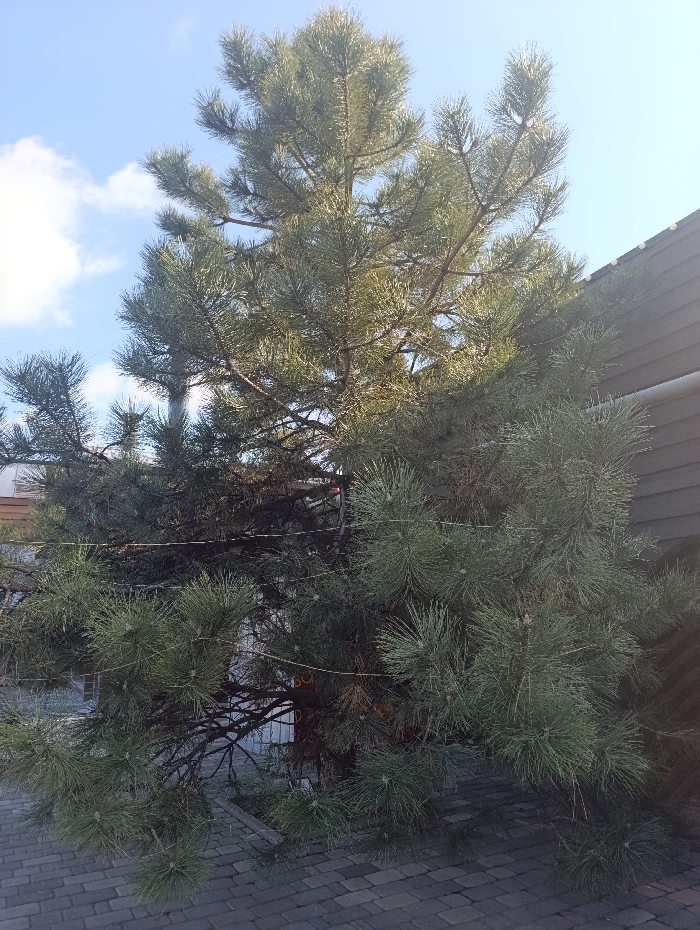 - "An outdoor scene, likely captured from a slightly elevated perspective, is dominated by a large, mature pine tree situated against a bright blue sky with wispy white clouds, characteristic of Rostov-on-Don, Russia" by FM-ZV7qE3, licensed under CC BY 4.0