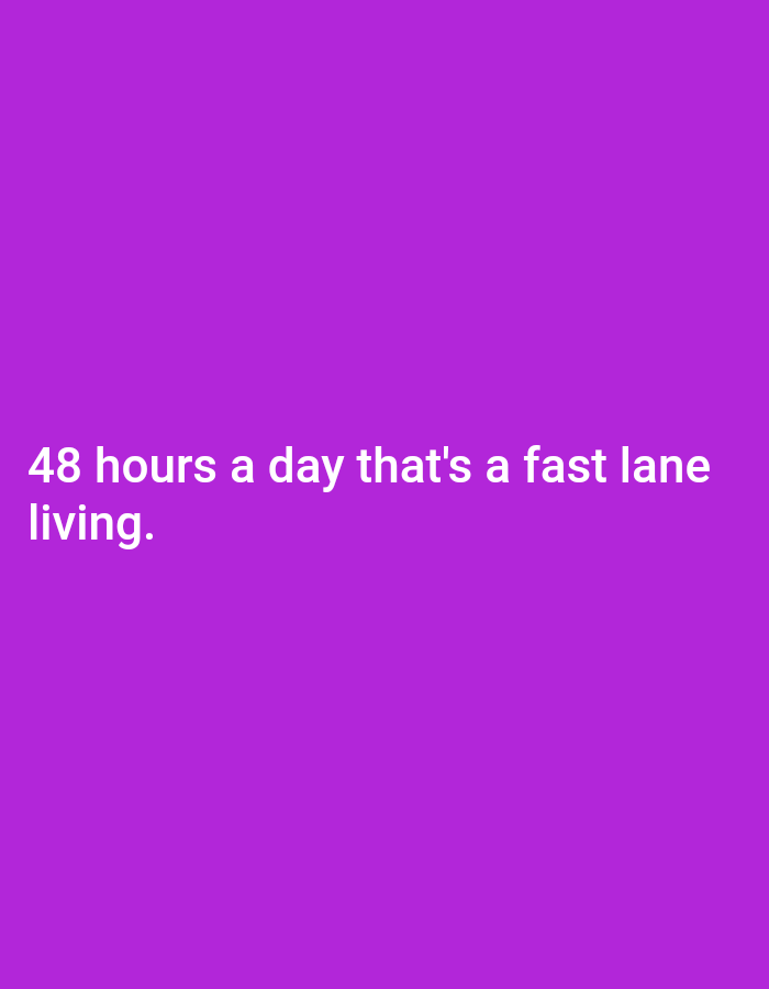 A purple background displays the text "48 hours a day that's a fast lane living." The words are in a clear, white sans-serif font and are centrally located towards the bottom of the image. The simple composition emphasizes the meaning behind the quote.