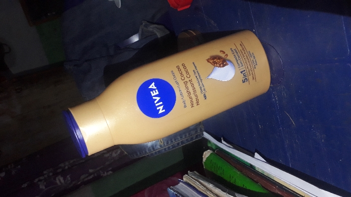 - "A tan-colored bottle of NIVEA body lotion, titled "Nourishing Cocoa," is angled on a blue surface" by FM-odVrm2, licensed under CC BY 4.0