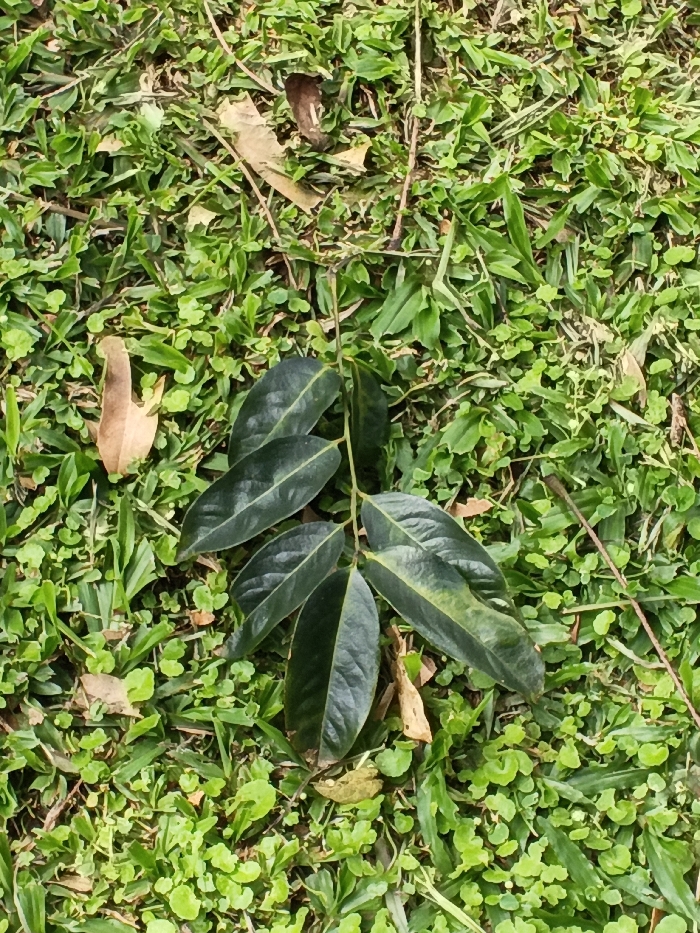 - "A verdant lawn hosts a fallen branch with dark green, oblong leaves" by FM-rYCca2, licensed under CC BY 4.0