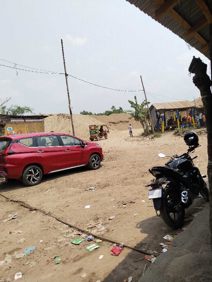 dirt road in front of a small shop in Pangasia, Bangladesh, located at coordinates (latitude: 22