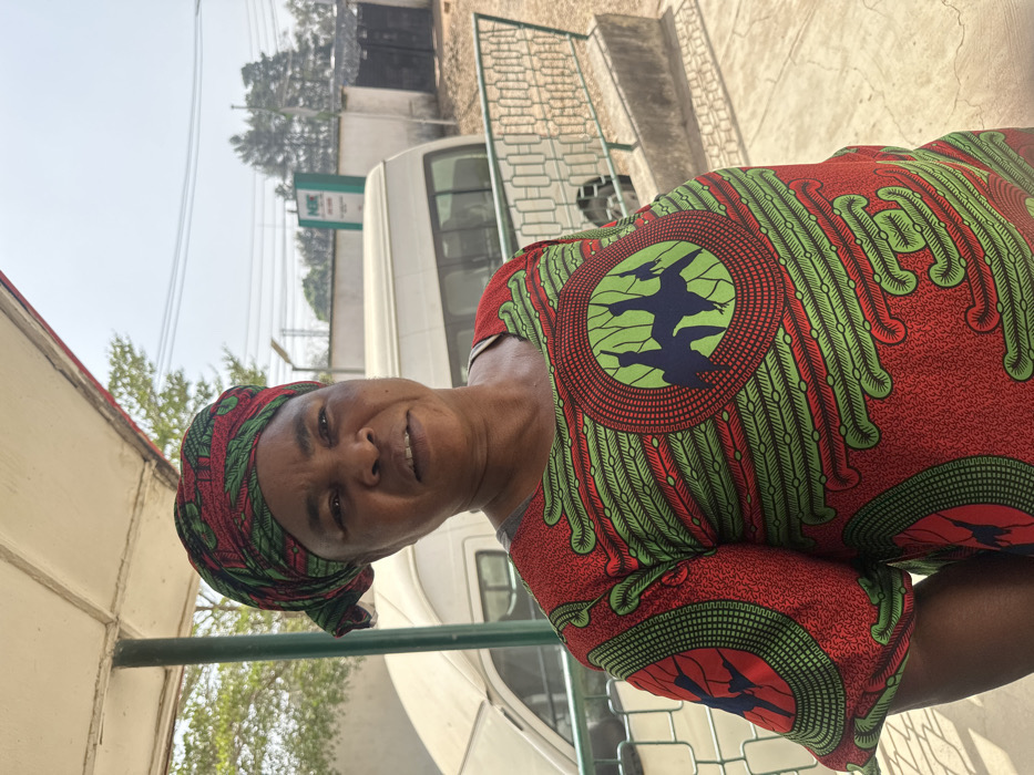 - "An adult female is depicted in an outdoor setting in Jos, Nigeria, positioned slightly off-center under a white canopy with a light green support pillar" by FM-NVP0v2, licensed under CC BY 4.0