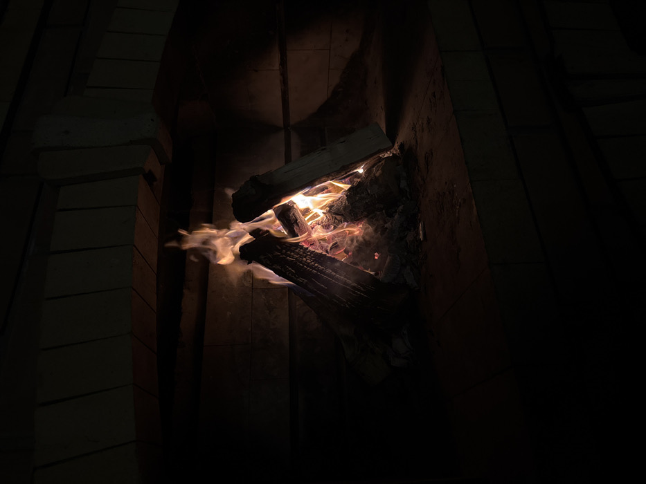 - "A fire is burning within a stone or brick fireplace in Kvakhvreli, Georgia" by FM-ZFBtA3, licensed under CC BY 4.0