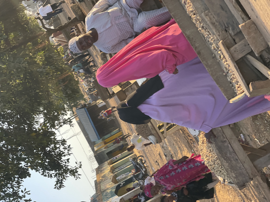 The image portrays an outdoor market or street scene in Muchiya, Nigeria, under clear, bright daylight conditions