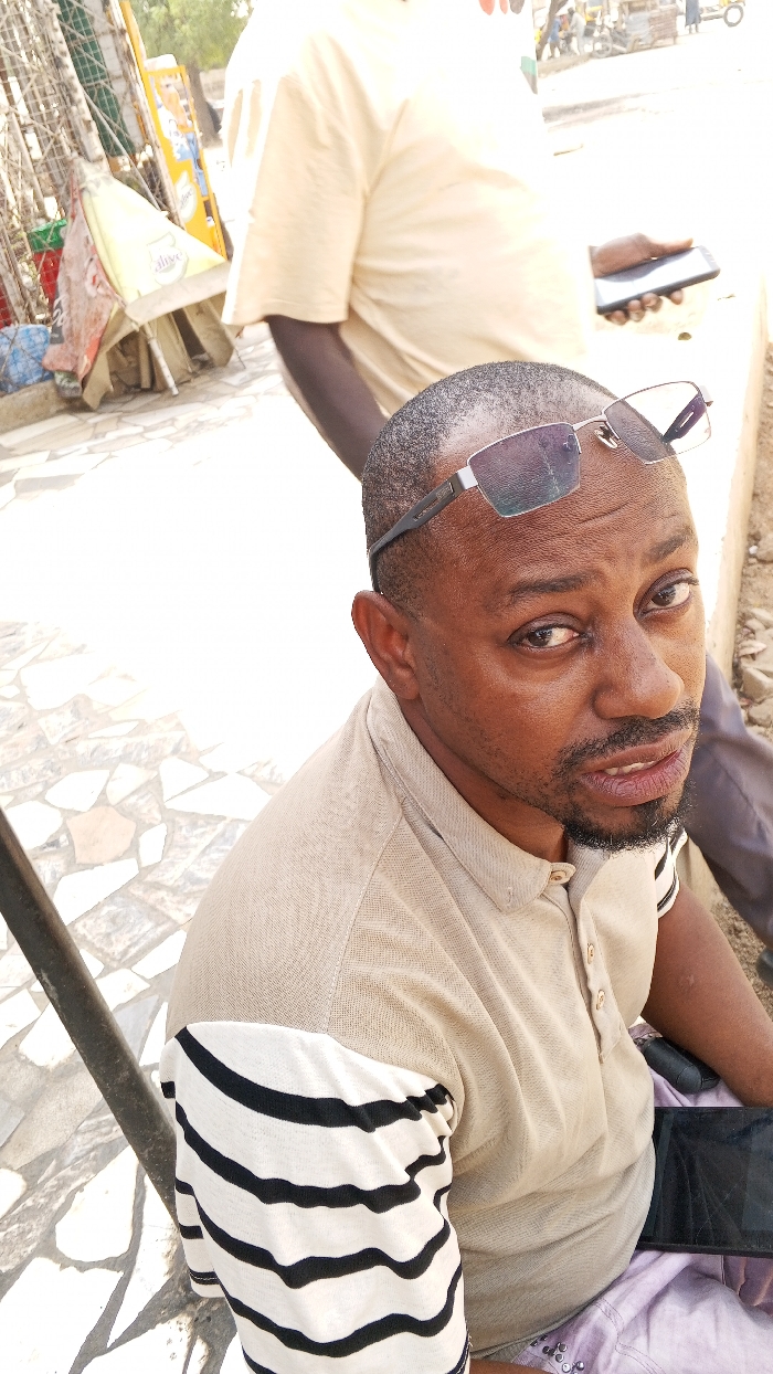 An outdoor scene in Tudun Murtala, Nigeria, depicts two adult males during daylight
