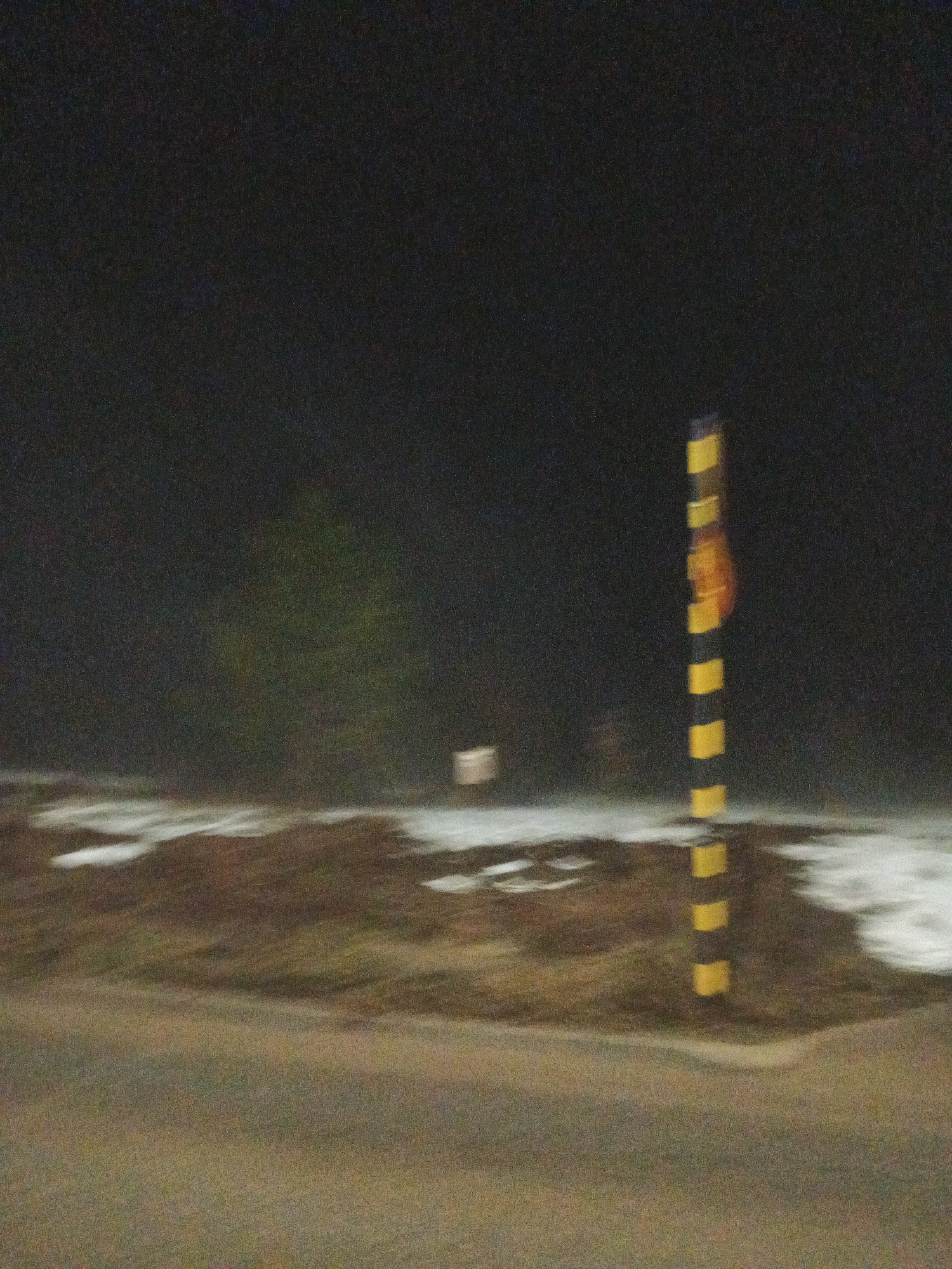 The image depicts a dark, possibly nighttime, scene in what appears to be a roadside environment
