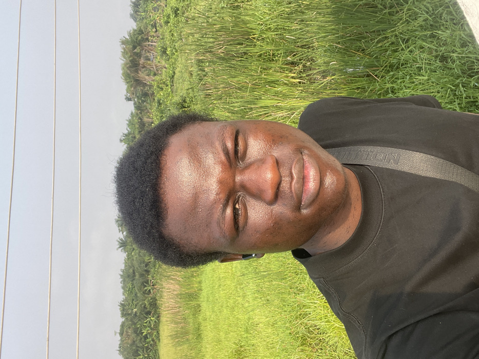 An individual is depicted in a close-up, chest-level portrait, positioned outdoors in Itoga, Nigeria