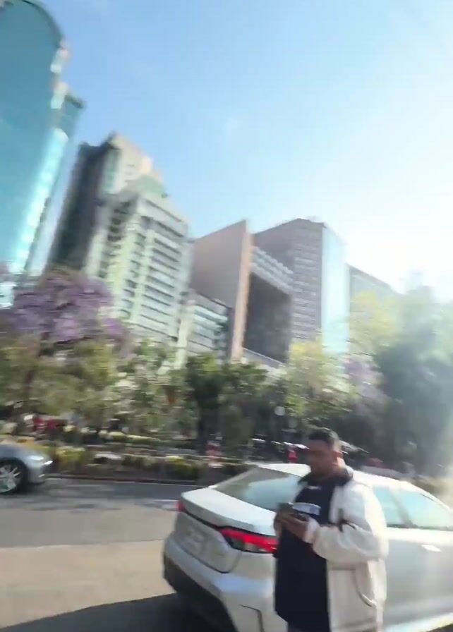 Three women are walking across a pedestrian crosswalk on a sunny day. They are wearing athletic clothing and medals around their necks. Each woman is holding a cell phone. The camera view is from a first-person perspective, as the person recording is walking along with them. The crosswalk stripes are white against a gray asphalt surface with cracks. Beyond the crosswalk, there is a street, trees, and a monument.