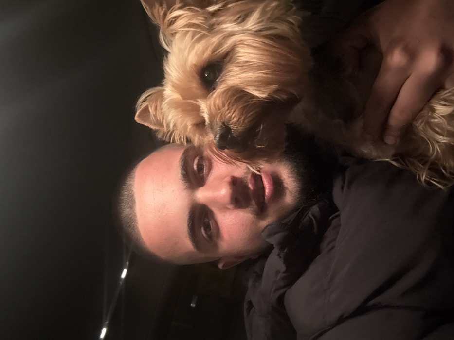 - "The image displays a close-up indoor portrait of an adult male and a small dog, likely taken within the interior of a vehicle during nighttime conditions" by FM-I4lnF2, licensed under CC BY 4.0