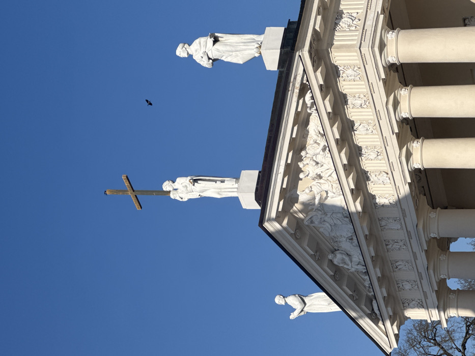 - "The image displays a detailed view of the rooftop and upper facade of the Cathedral Basilica of St" by FM-6rDCV2, licensed under CC BY 4.0