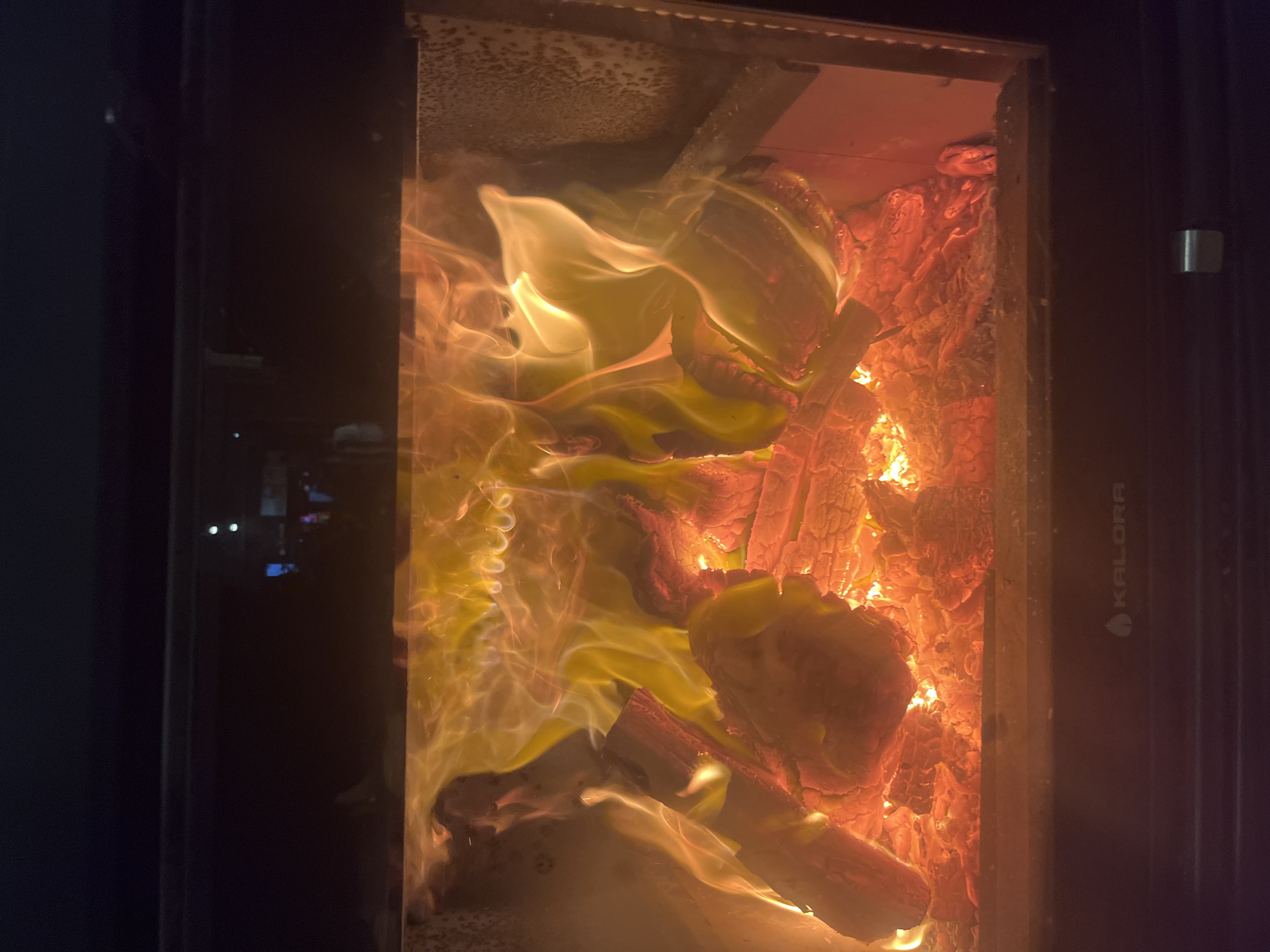 - "The image displays a close-up view of a wood-burning fire contained within a modern, dark-colored wood stove or fireplace insert, located in an interior setting within Wombarra, Australia" by FM-R1zri2, licensed under CC BY 4.0