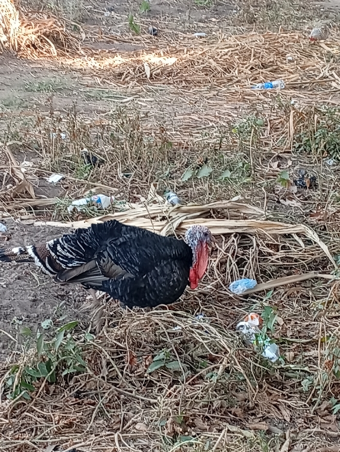 - "An adult turkey is depicted resting or foraging on a patch of dry, sparse ground in Zaki Biyem, Nigeria" by FM-7VC6e2, licensed under CC BY 4.0