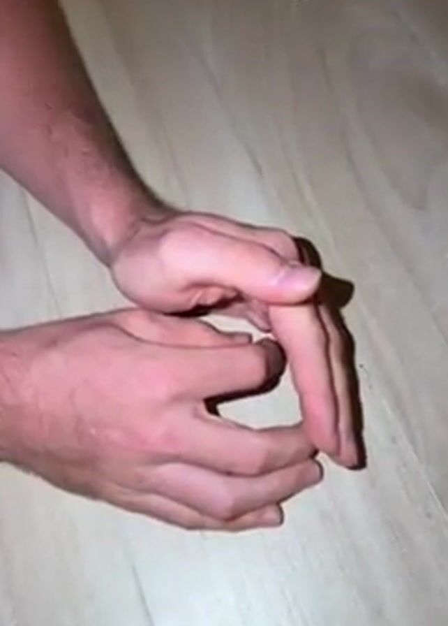 - ". Two individuals sit on a wooden floor. One person's hands are placed flat with the palms down. The fingers of one hand overlap those of the other. The second person reaches out, then places their hand down on top of the others in the same manner. The person who reaches out is wearing a silver bracelet." by FM-eDphv2, licensed under CC BY 4.0