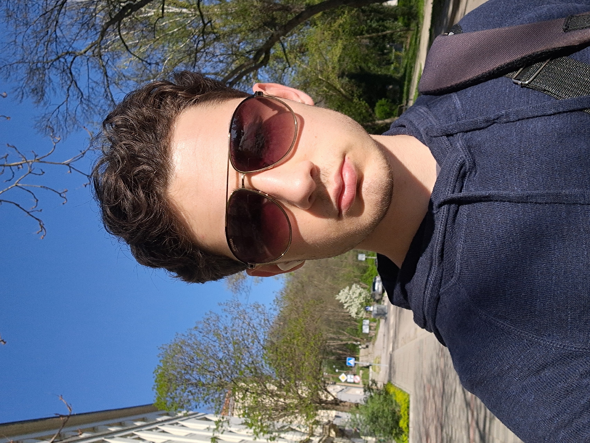 - "A young adult male with short, curly brown hair and sunglasses is the primary subject of the photograph" by FM-6xMzX2, licensed under CC BY 4.0