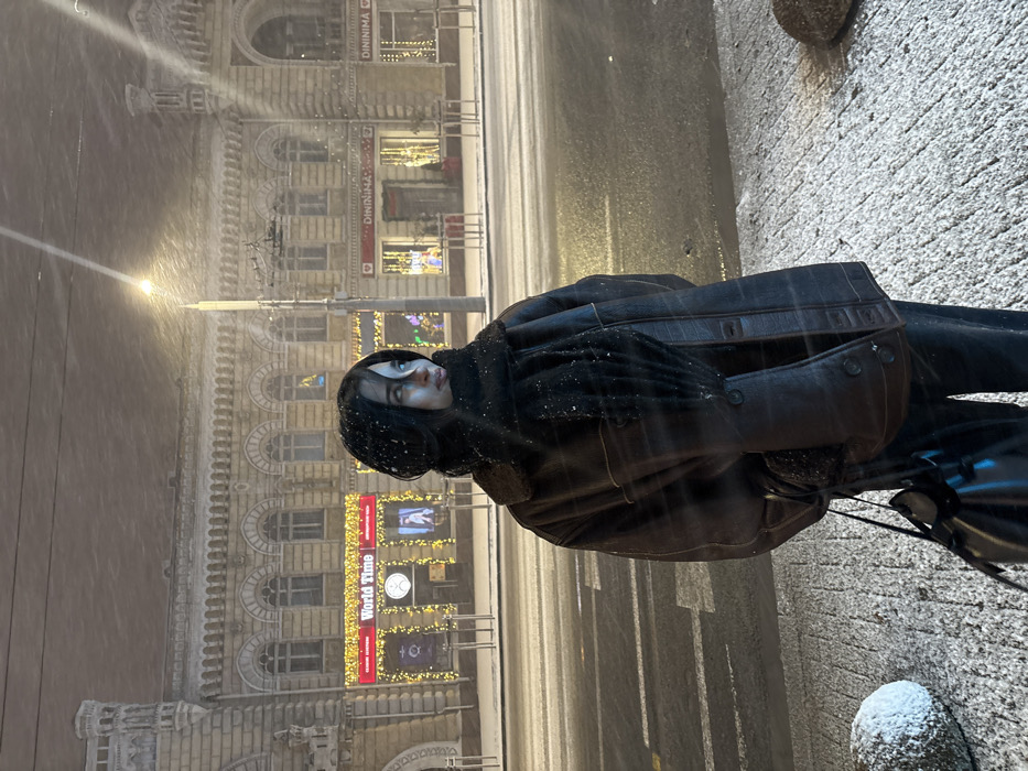 - "A woman with dark hair stands on a snowy city street" by FM-3pJMh1, licensed under CC BY 4.0