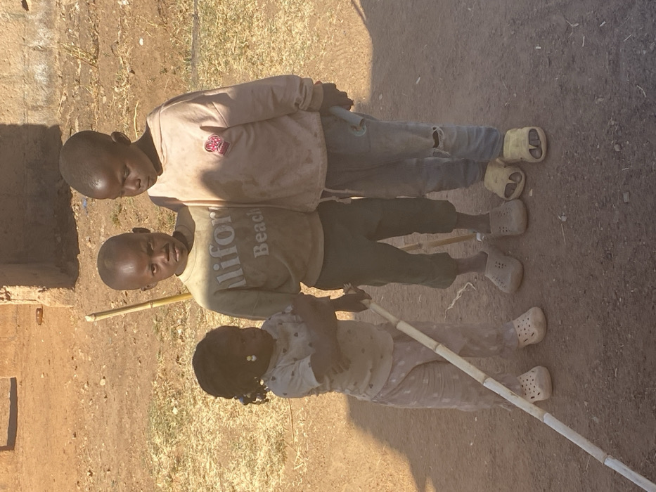 - "An outdoor scene in Udu, Nigeria, features three children standing on a dry, reddish-brown dirt ground with sparse patches of green growth" by FM-KCQbx1, licensed under CC BY 4.0