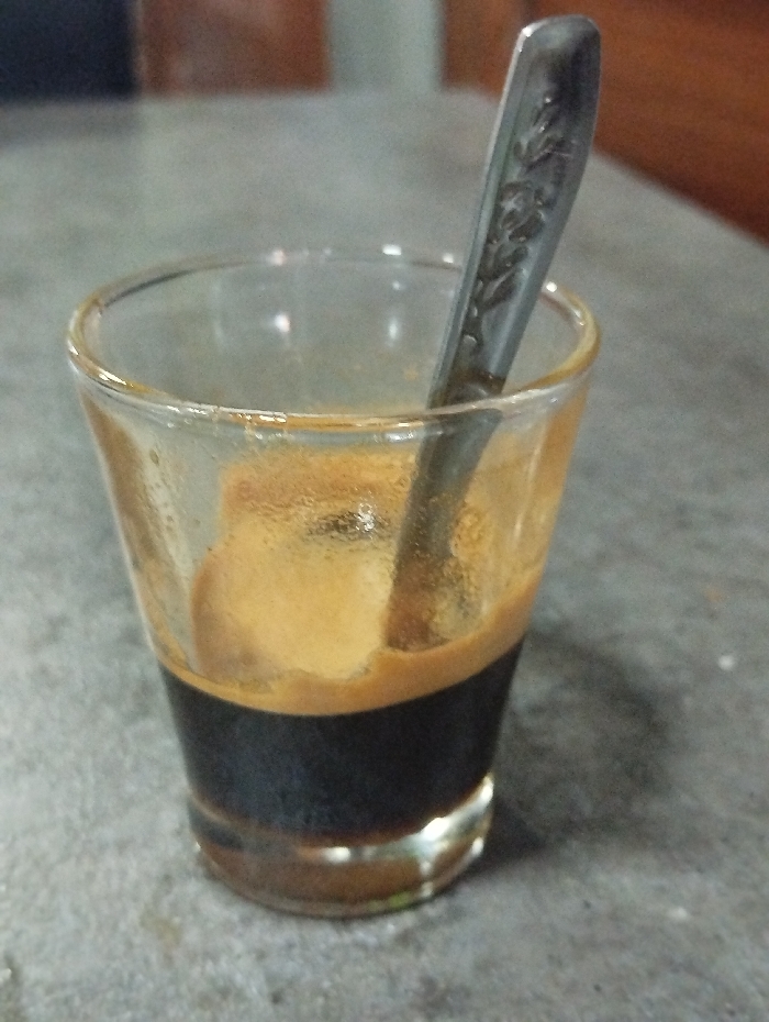 - "This image captures a close-up of a small glass of coffee with a spoon, located in Tangier, Morocco" by FM-ZknsT2, licensed under CC BY 4.0