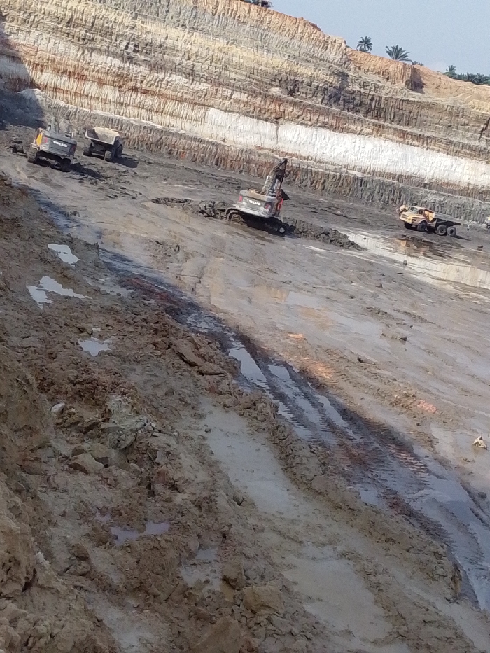 The image depicts an open-pit mining operation, identified as Hoche, Nigeria, based on the prompt