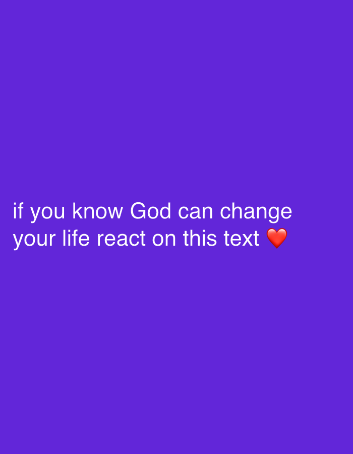 The image displays a digital graphic with a solid, uniform purple background. White sans-serif text is centrally aligned in the lower half of the frame, stating: "if you know God can change your life react on this text". A red heart emoji (❤️) immediately follows the text. The composition is entirely textual and emblematic; no people, physical objects, or environmental details are depicted. This digital scene provides no visual information indicating a specific geographic location, including the city of Ikota, Nigeria, or any other physical setting.