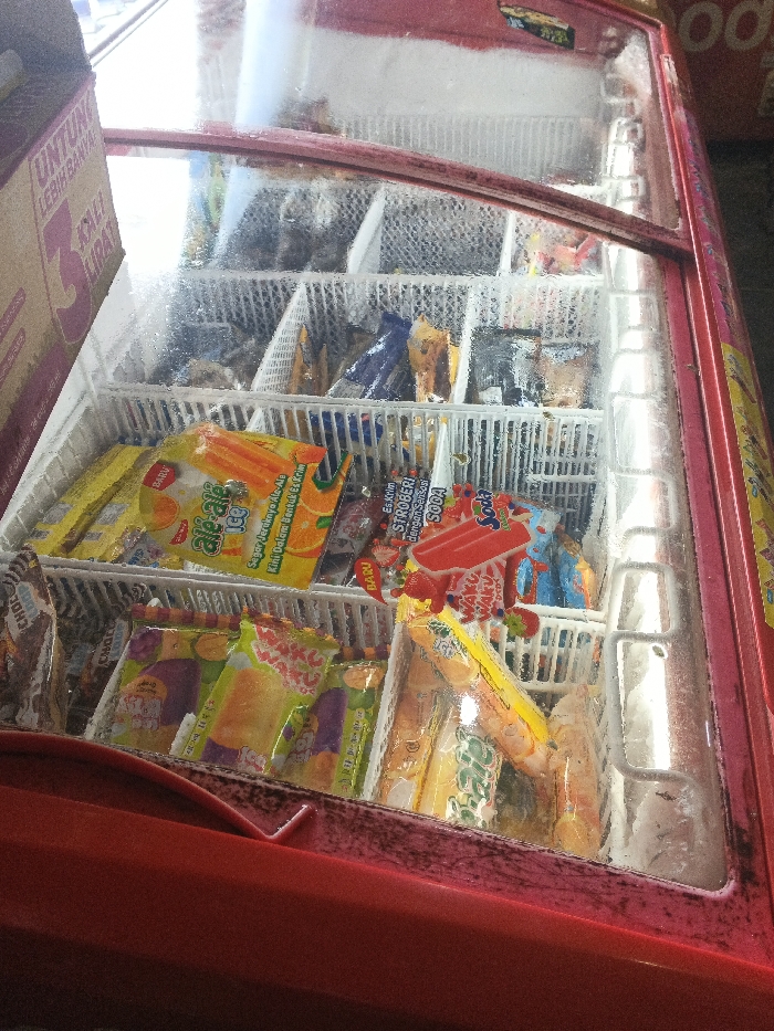 - "This image depicts a red commercial chest freezer with a clear, condensation-covered glass lid, containing various individually packaged frozen treats" by FM-4Sqr83, licensed under CC BY 4.0