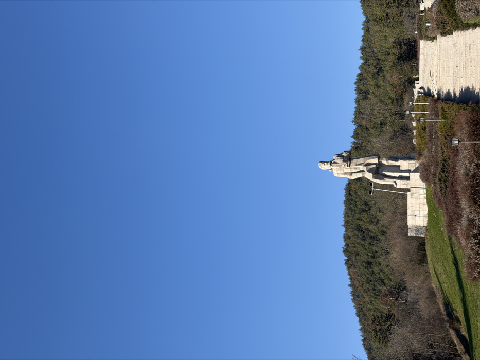 The image depicts the Hristo Botev Monument in Kalofer, Bulgaria