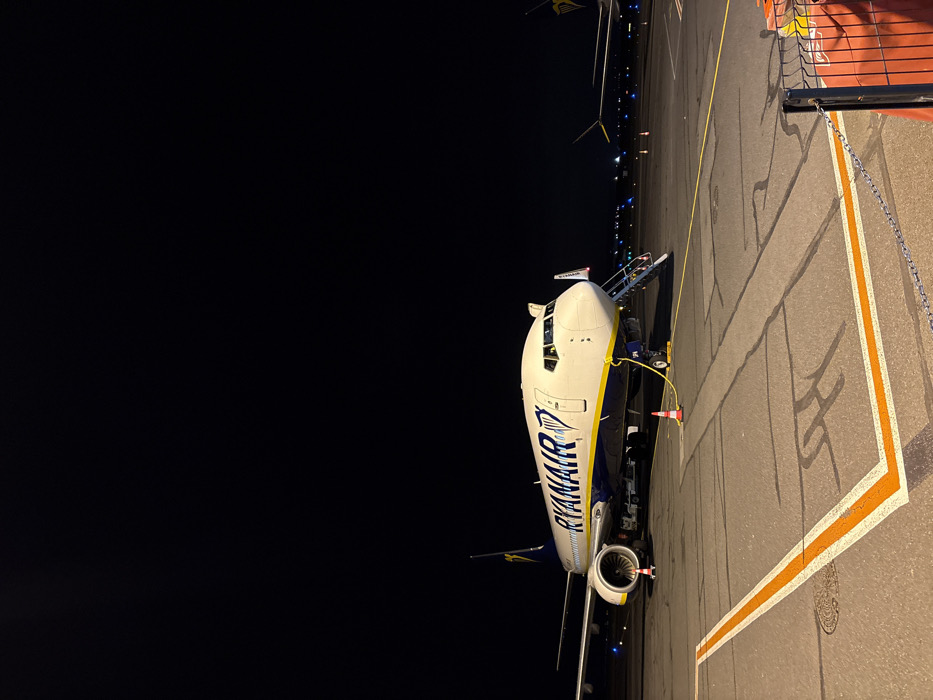 - "A Ryanair airplane is parked on a tarmac at night" by FM-3pJMh1, licensed under CC BY 4.0