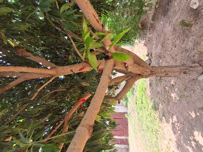 This image, captured in Howayi, Nigeria, presents a mango tree (Mangifera indica) under bright daylight