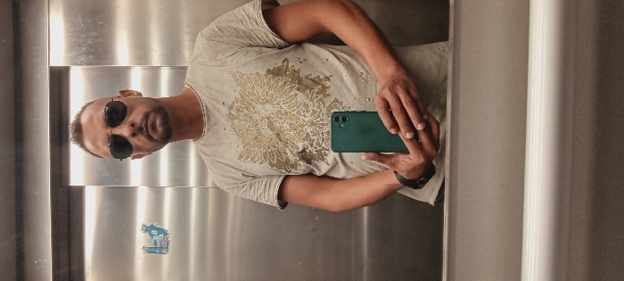 - "A male subject is depicted in a selfie taken inside an elevator, identifiable as Meknes, Morocco, by a blue sticker on the left reflective wall portraying the city's Bab Mansour gate with the number '8'" by FM-MM3Sy2, licensed under CC BY 4.0