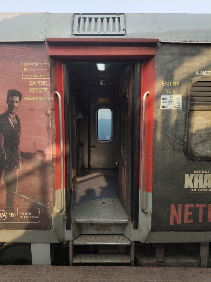- "An external view of an Indian Railways train car is captured at a platform in Bardhaman, India" by FM-NEVVT2, licensed under CC BY 4.0