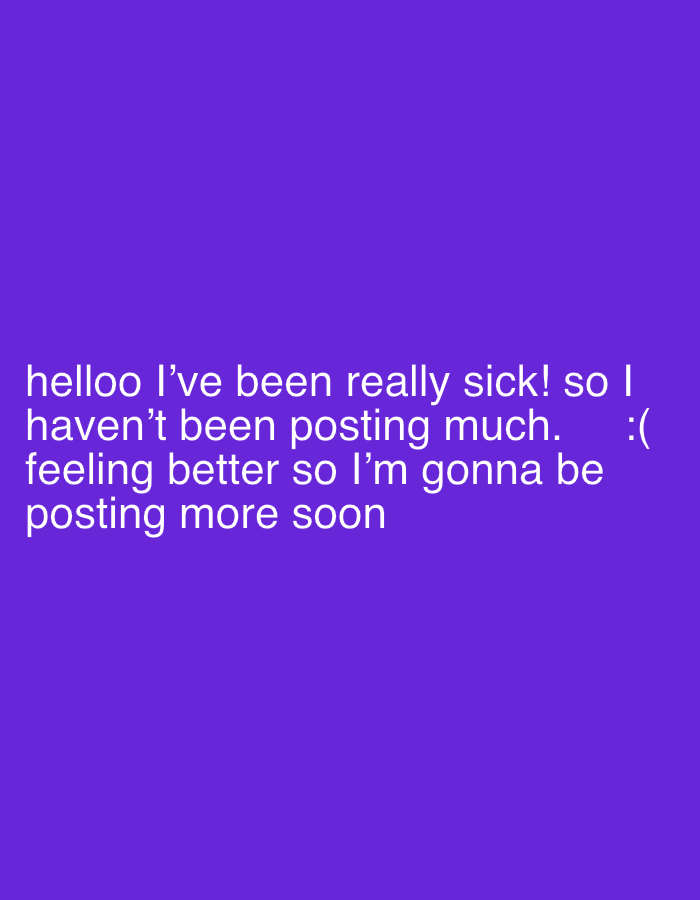 A digital graphic against a vibrant purple background presents a message written in a simple, sans-serif font. The text expresses that the writer has been unwell, which explains their infrequent posting. A sad face emoticon is included. The message ends with an optimistic note, stating they are feeling better and anticipate posting more content soon. The overall tone is personal and communicative, indicative of a social media update or announcement.