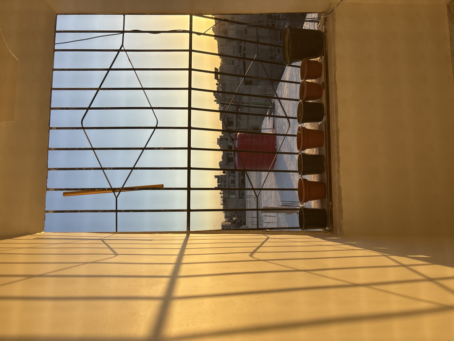 - "The image depicts an interior view looking out through a barred window over the city of Mu'adammiyat ash-Sham, Syria, during golden hour illumination" by FM-tvSGy2, licensed under CC BY 4.0