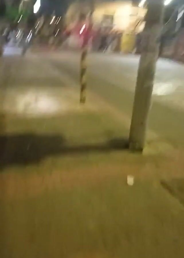 The video depicts an empty street at night